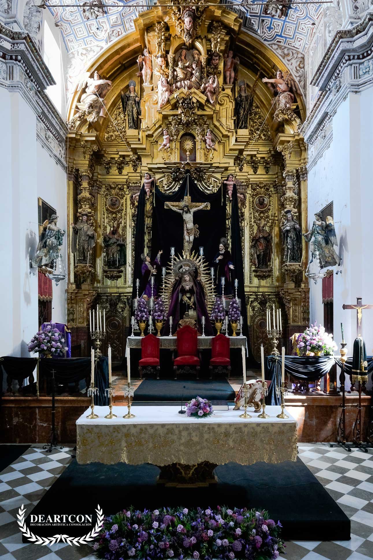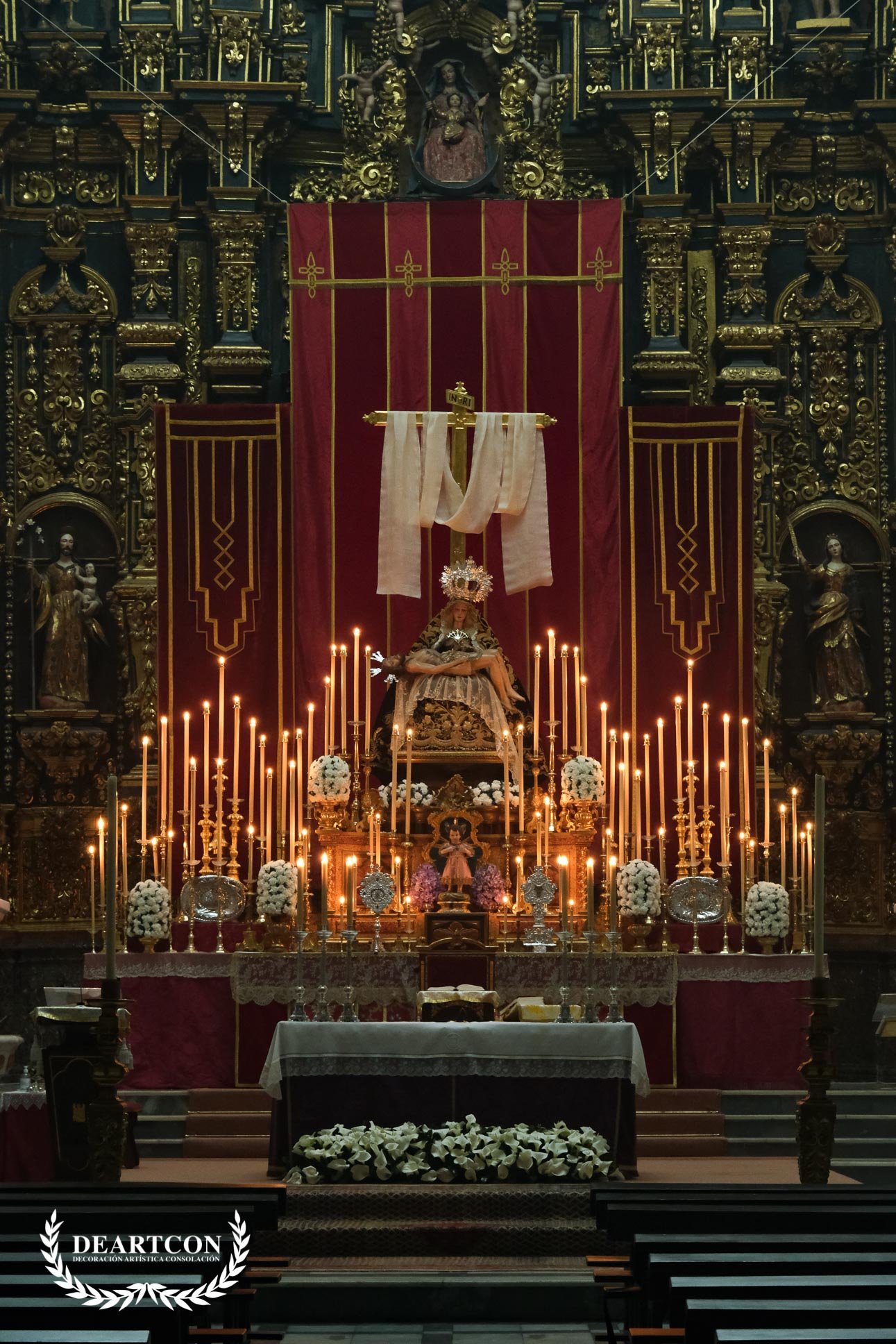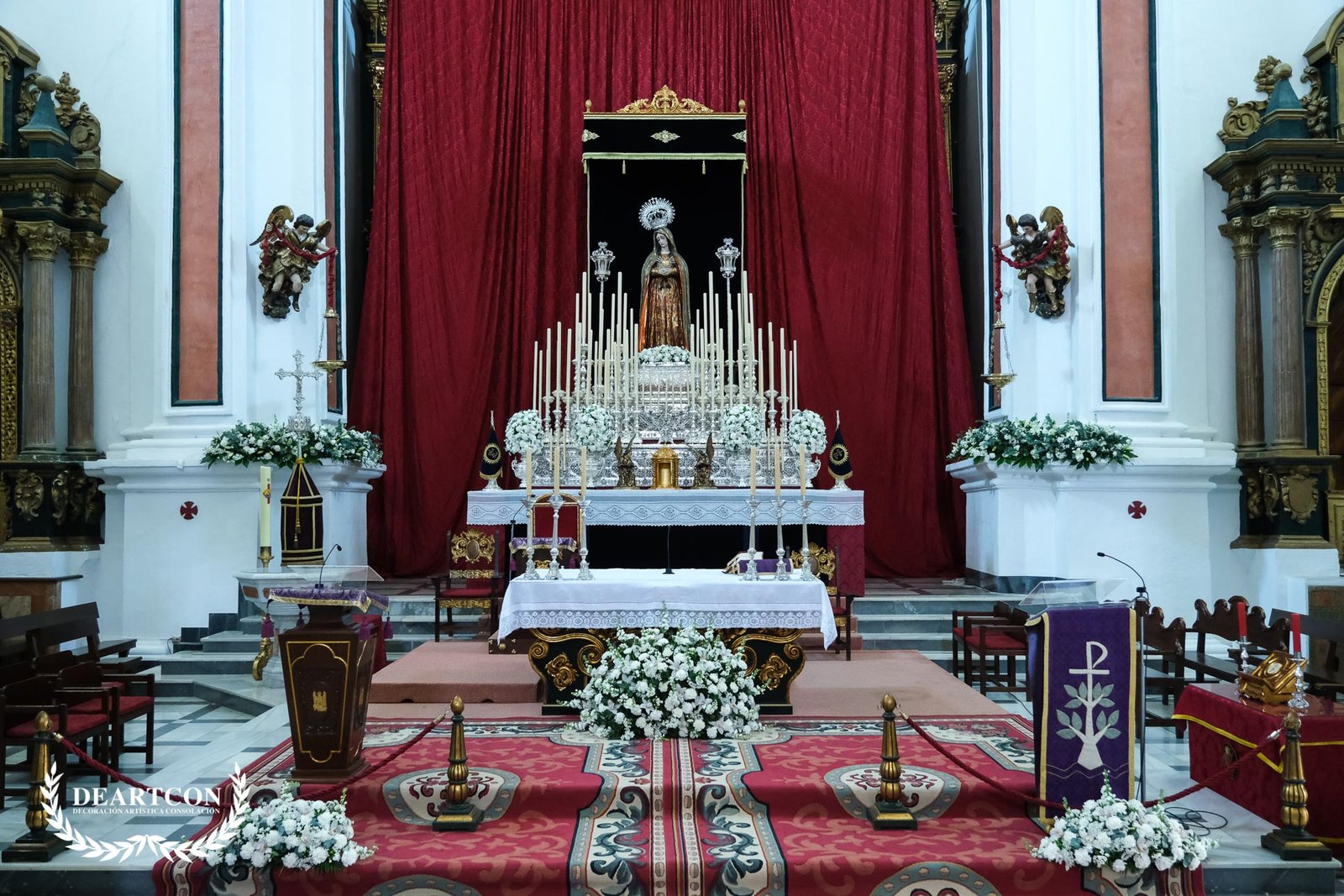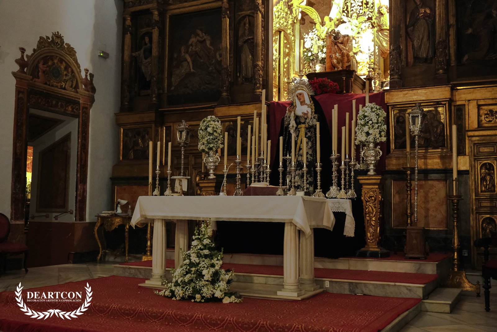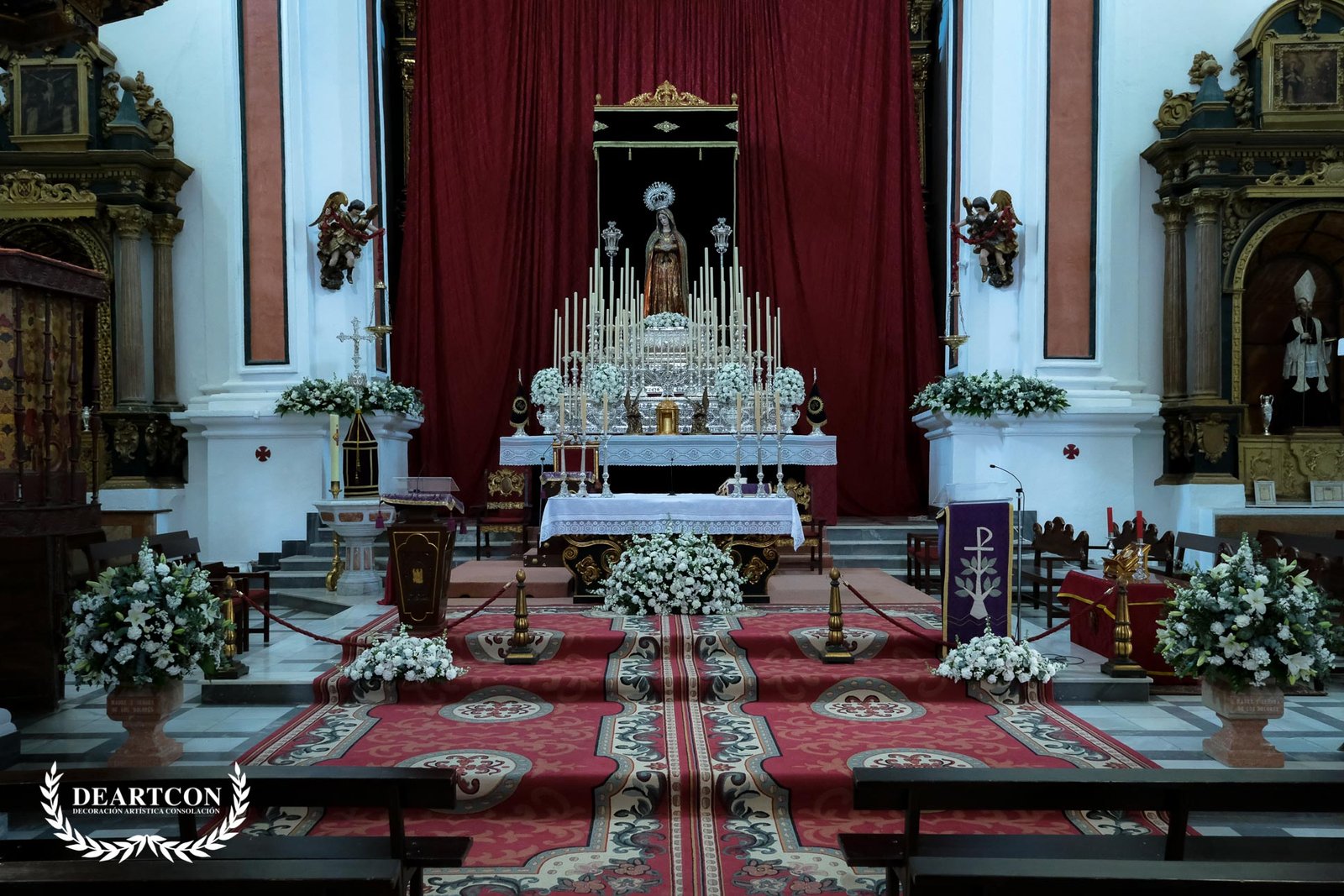 La Hermandad del Santo Entierro y la Hermandad de los Dolores son las últimas en celebrar sus cultos y ambas acompañamos con exornos florales propios y diferentes. Fúnebre y con arreglos cónicos para la primera y un jardín de flores para la Hermandad Servita.