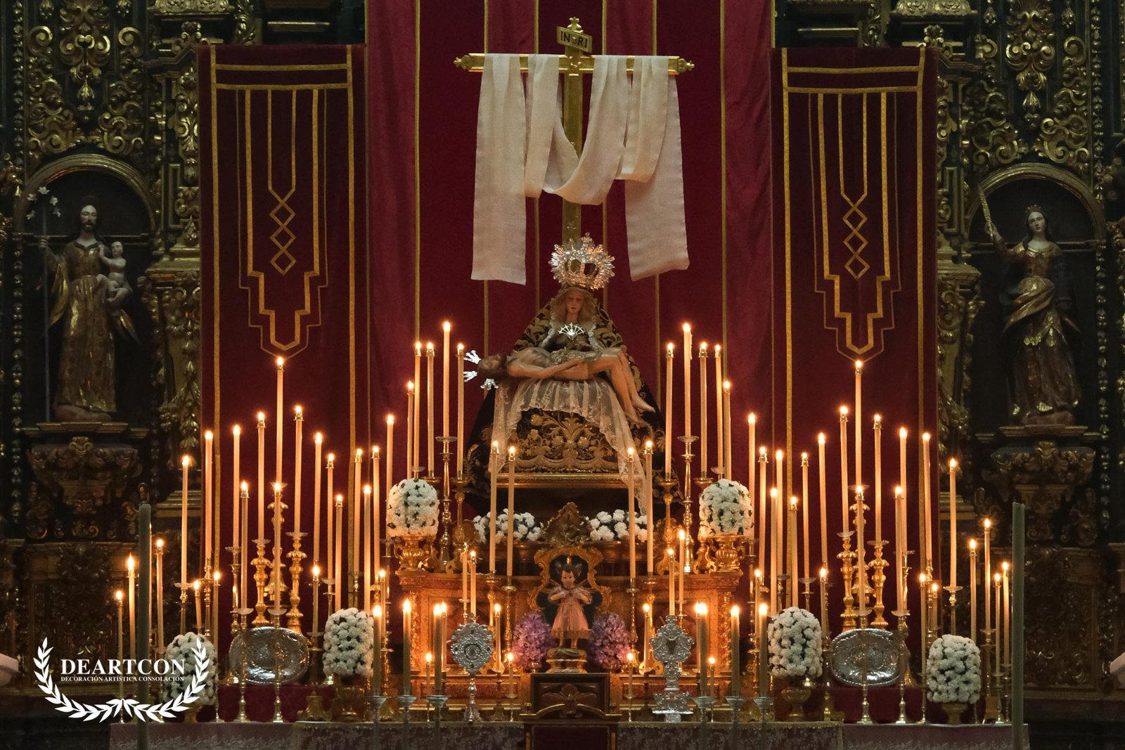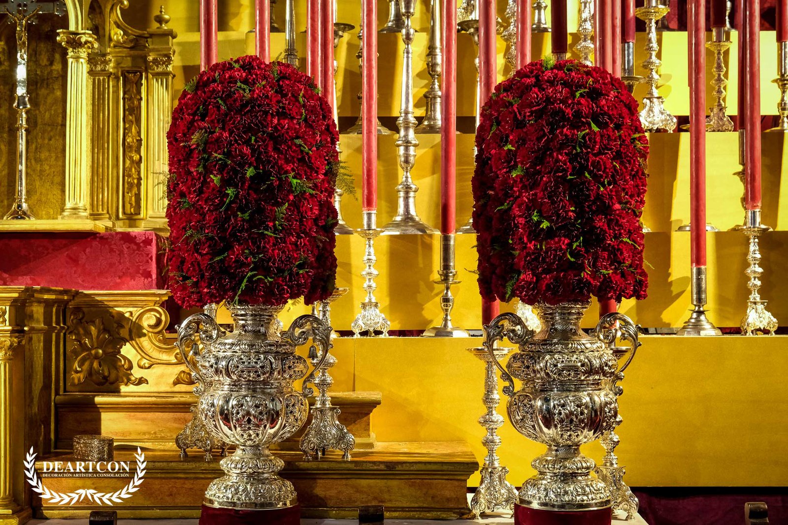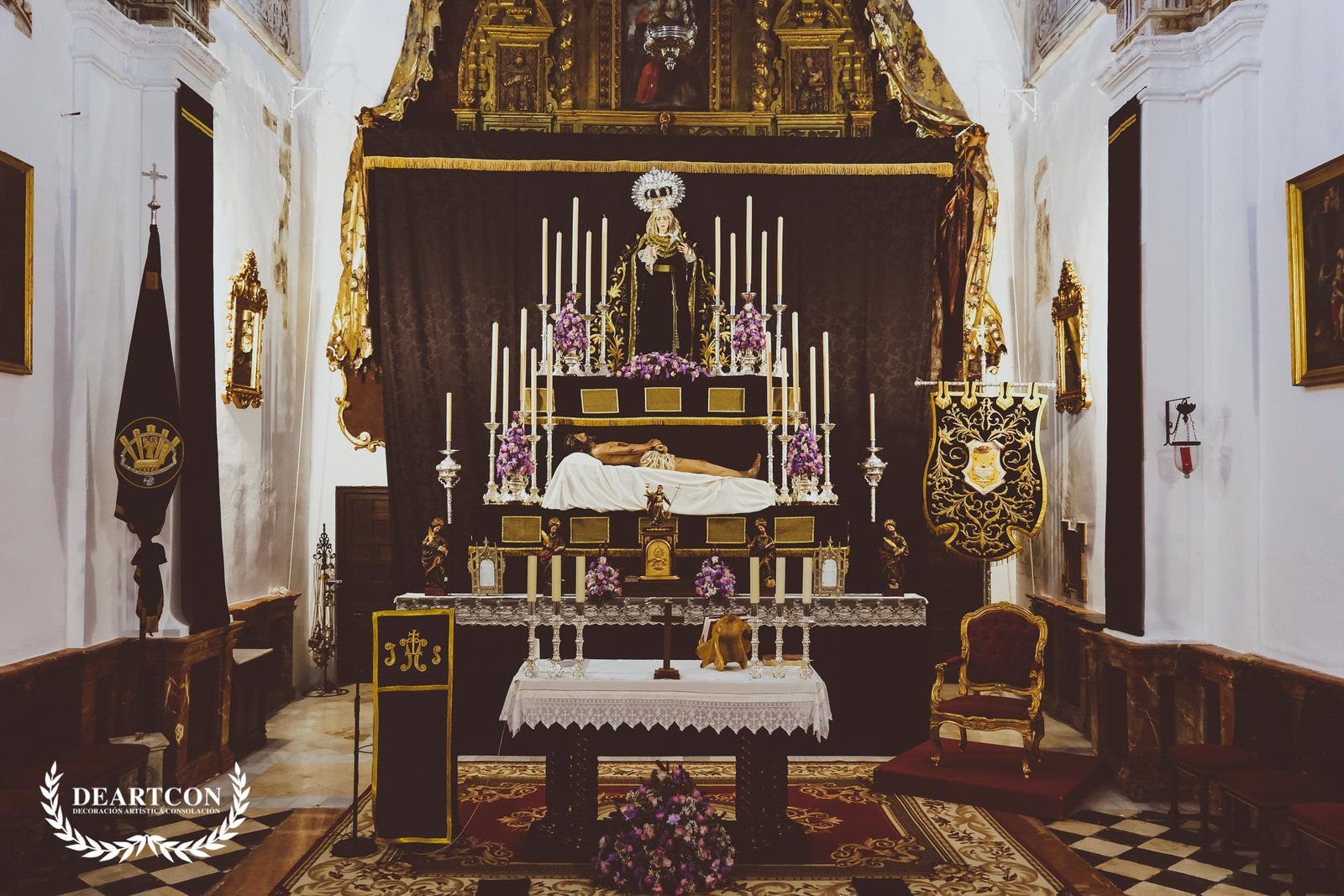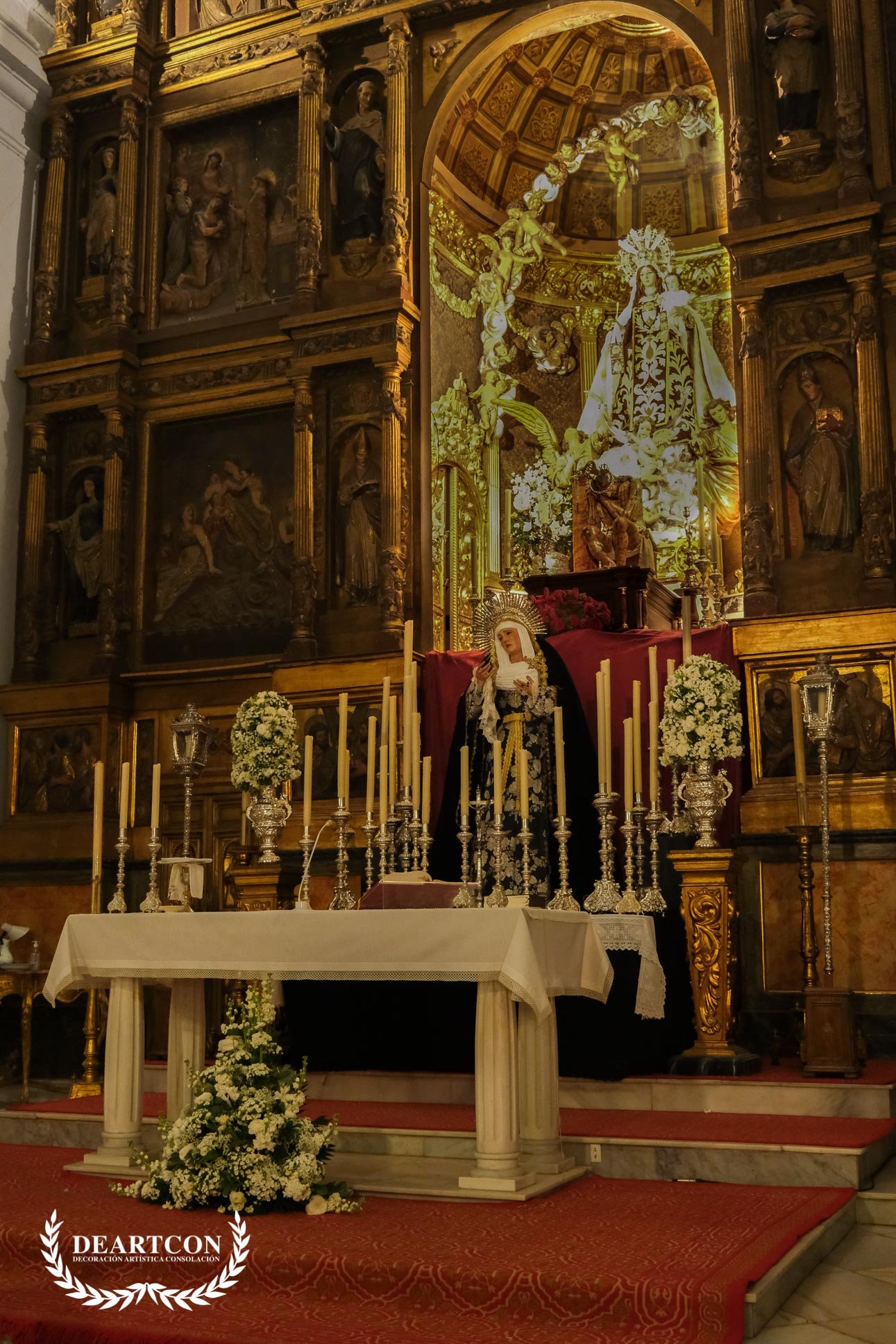 La Hermandad del Santo Entierro y la Hermandad de los Dolores son las últimas en celebrar sus cultos y ambas acompañamos con exornos florales propios y diferentes. Fúnebre y con arreglos cónicos para la primera y un jardín de flores para la Hermandad Servita.