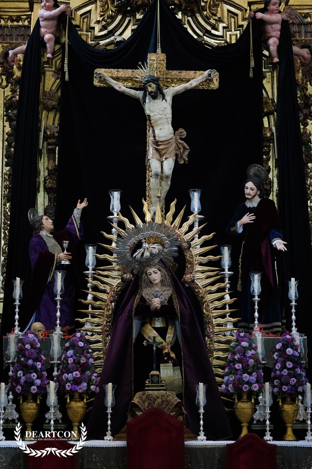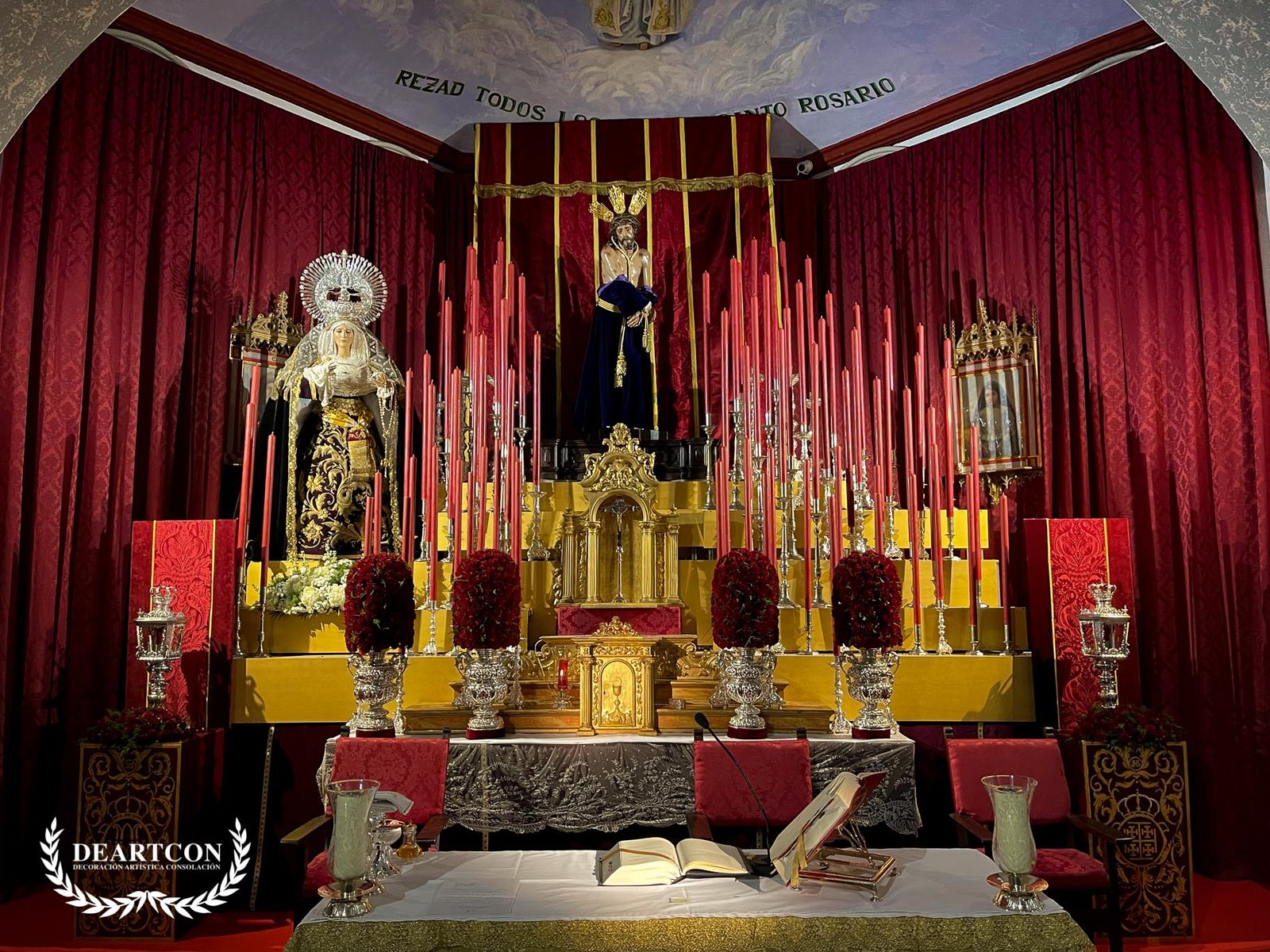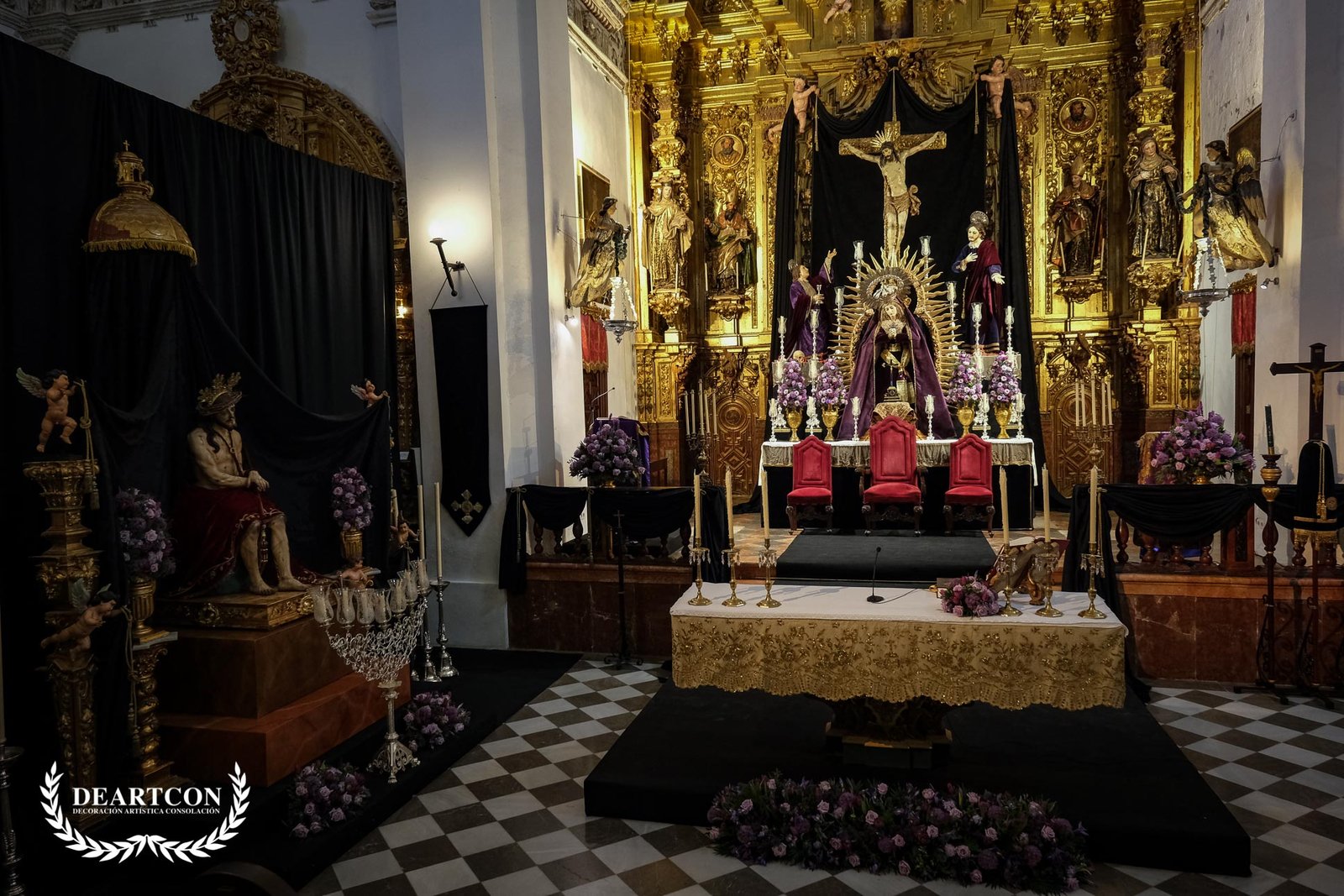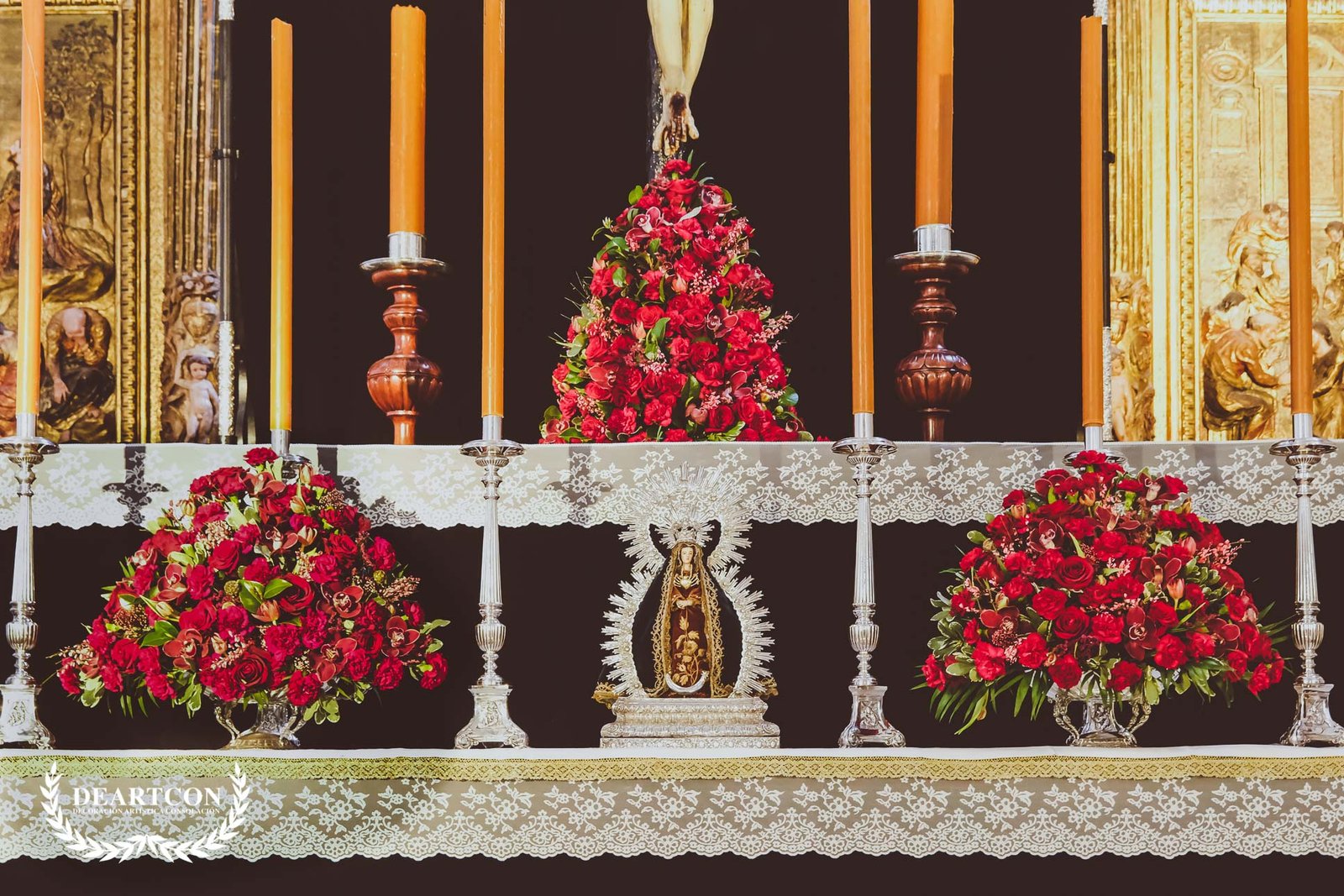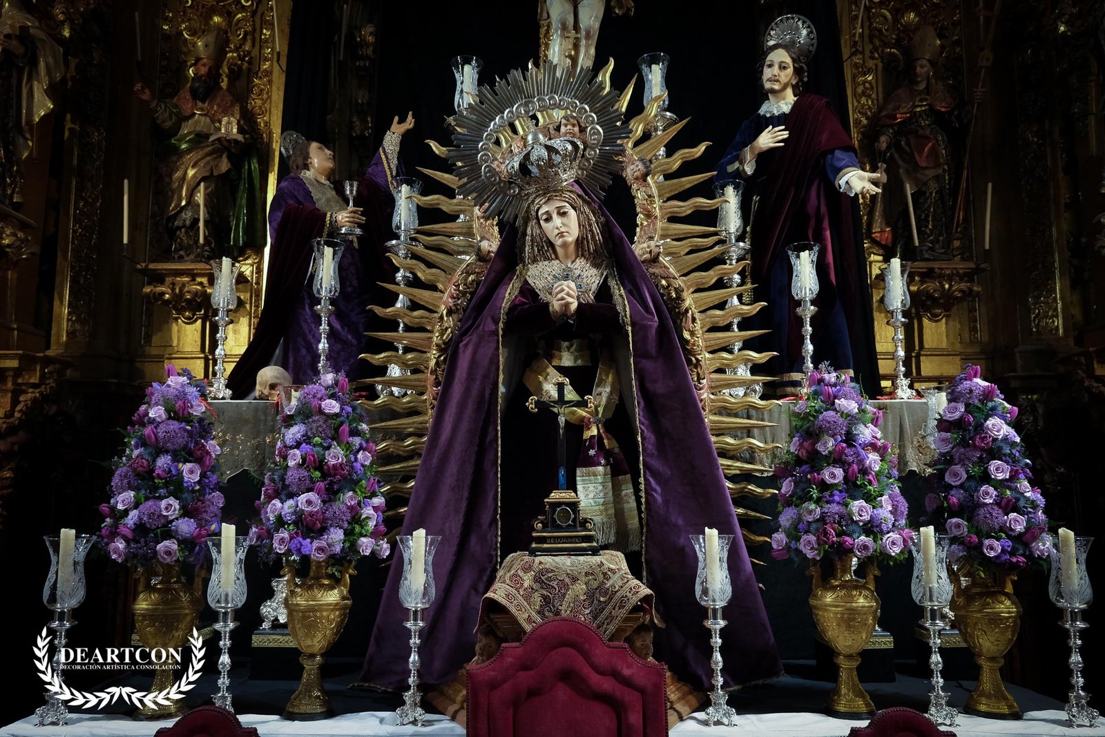 La Hermandad del Santo Entierro y la Hermandad de los Dolores son las últimas en celebrar sus cultos y ambas acompañamos con exornos florales propios y diferentes. Fúnebre y con arreglos cónicos para la primera y un jardín de flores para la Hermandad Servita.