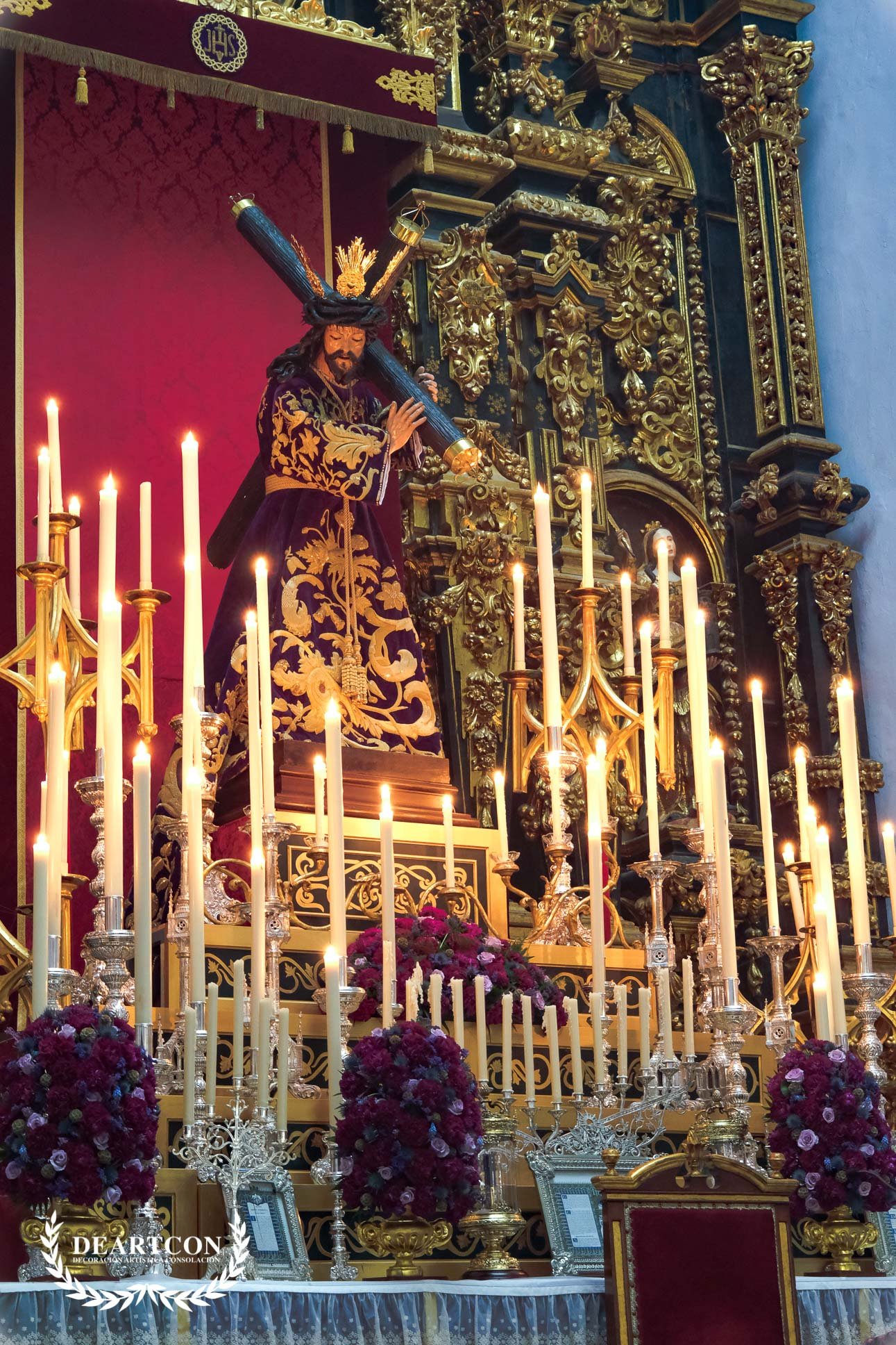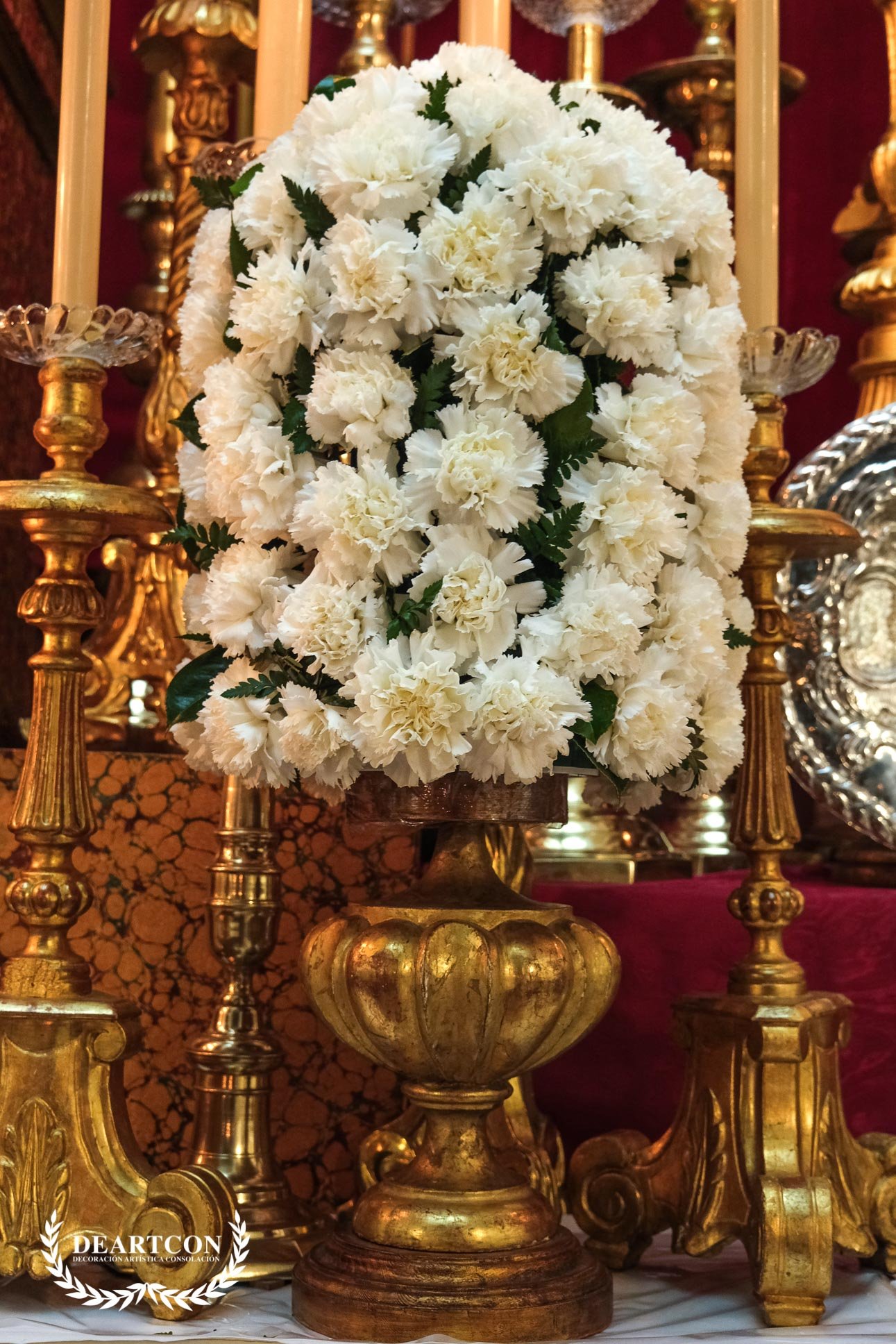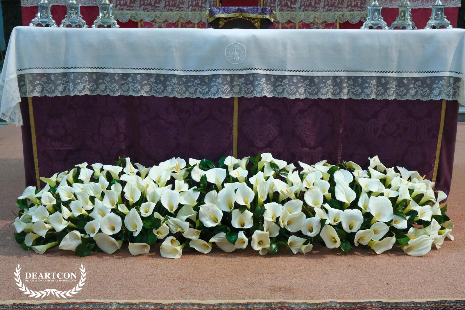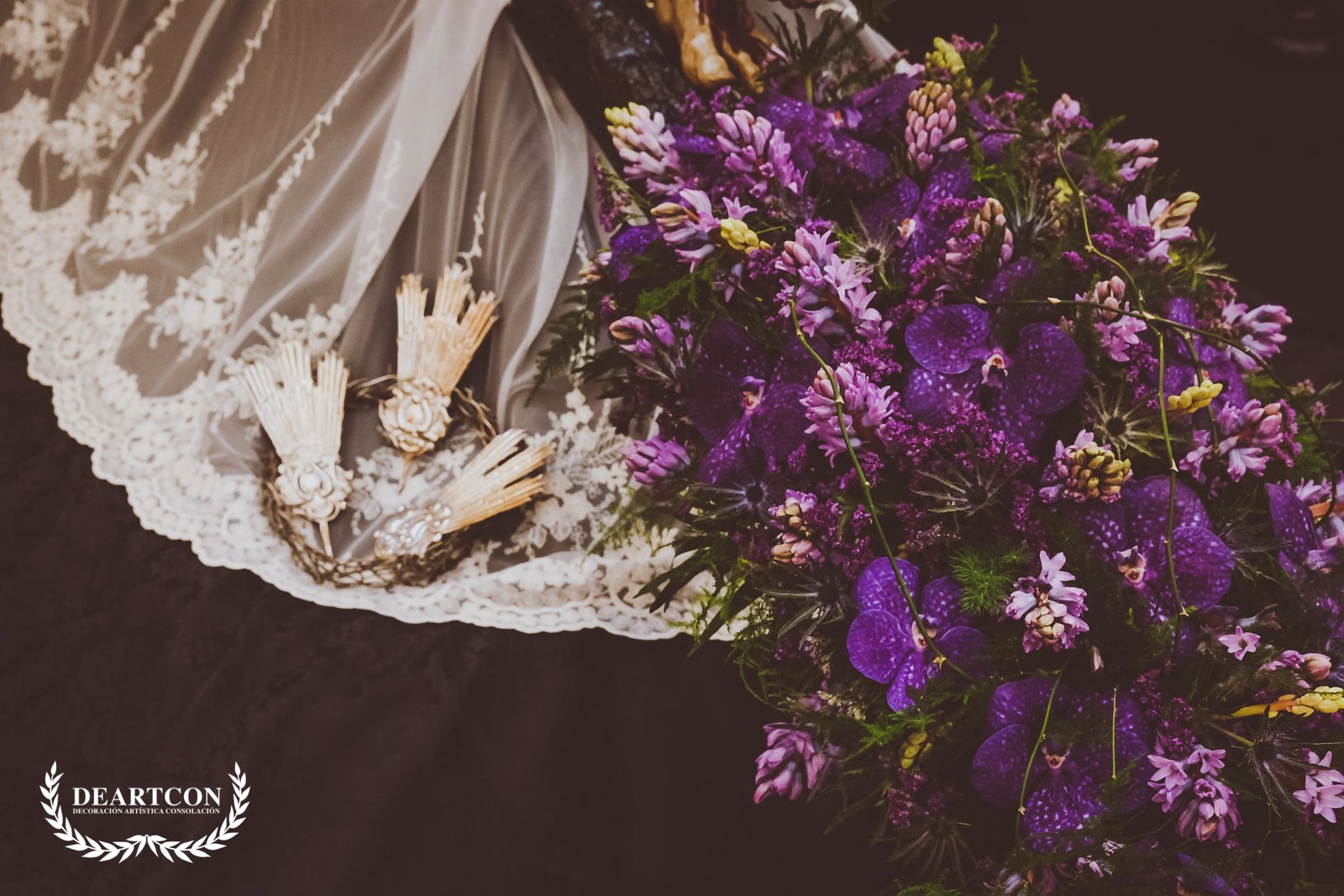 Nuestro primer diseño floral es para María Stma. de la Encarnación, corporación de vísperas a la que guardamos gran cariño, puesto que en sus inicios tuvimos la suerte de exornar y actualmente volvemos tanto a cada Domingo de Pasión como a sus cultos anuales.