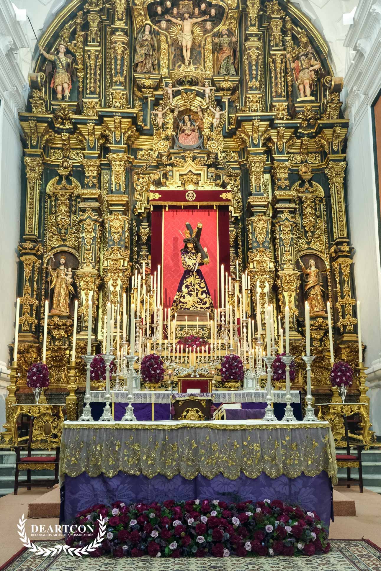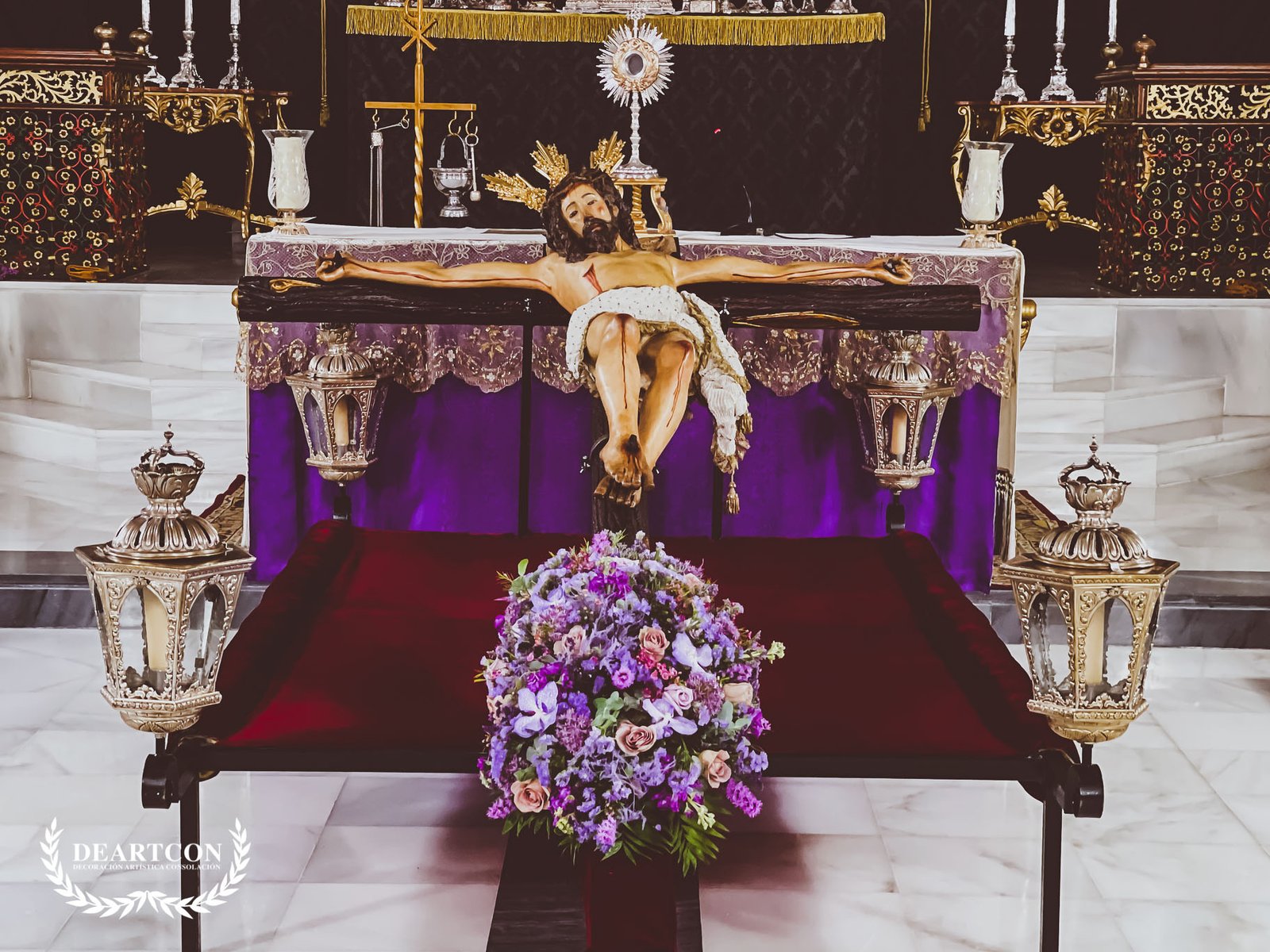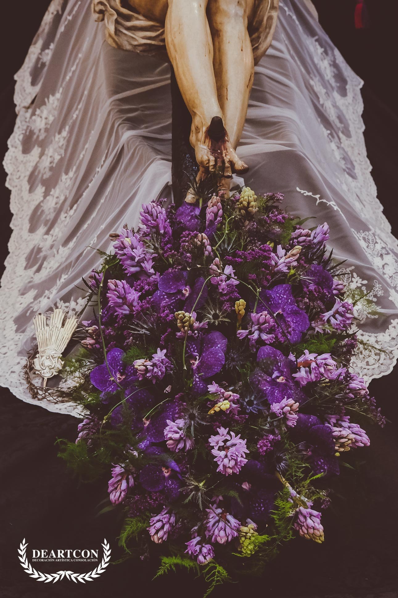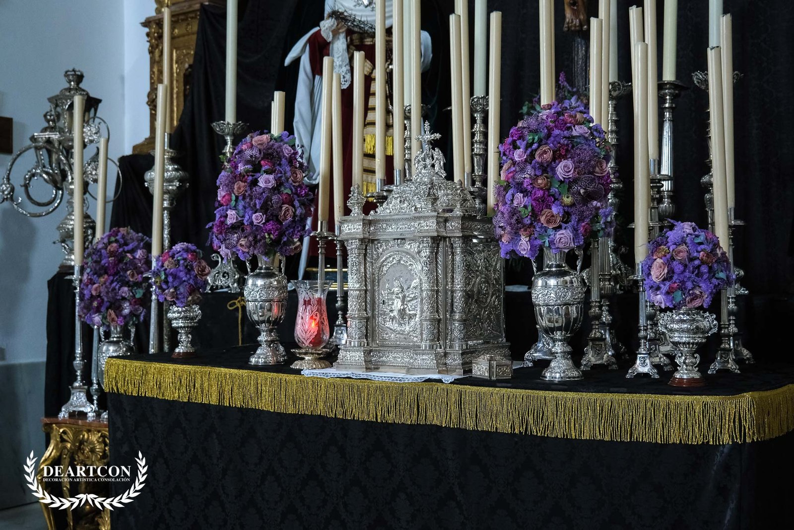 En la segunda semana para la Hermandad de la Vera Cruz, corporación a la que nos une desde hace años un cariño muy especial, arreglábamos sus cultos cuaresmales con una gran variedad de flor morada en sus distintas tonalidades.
