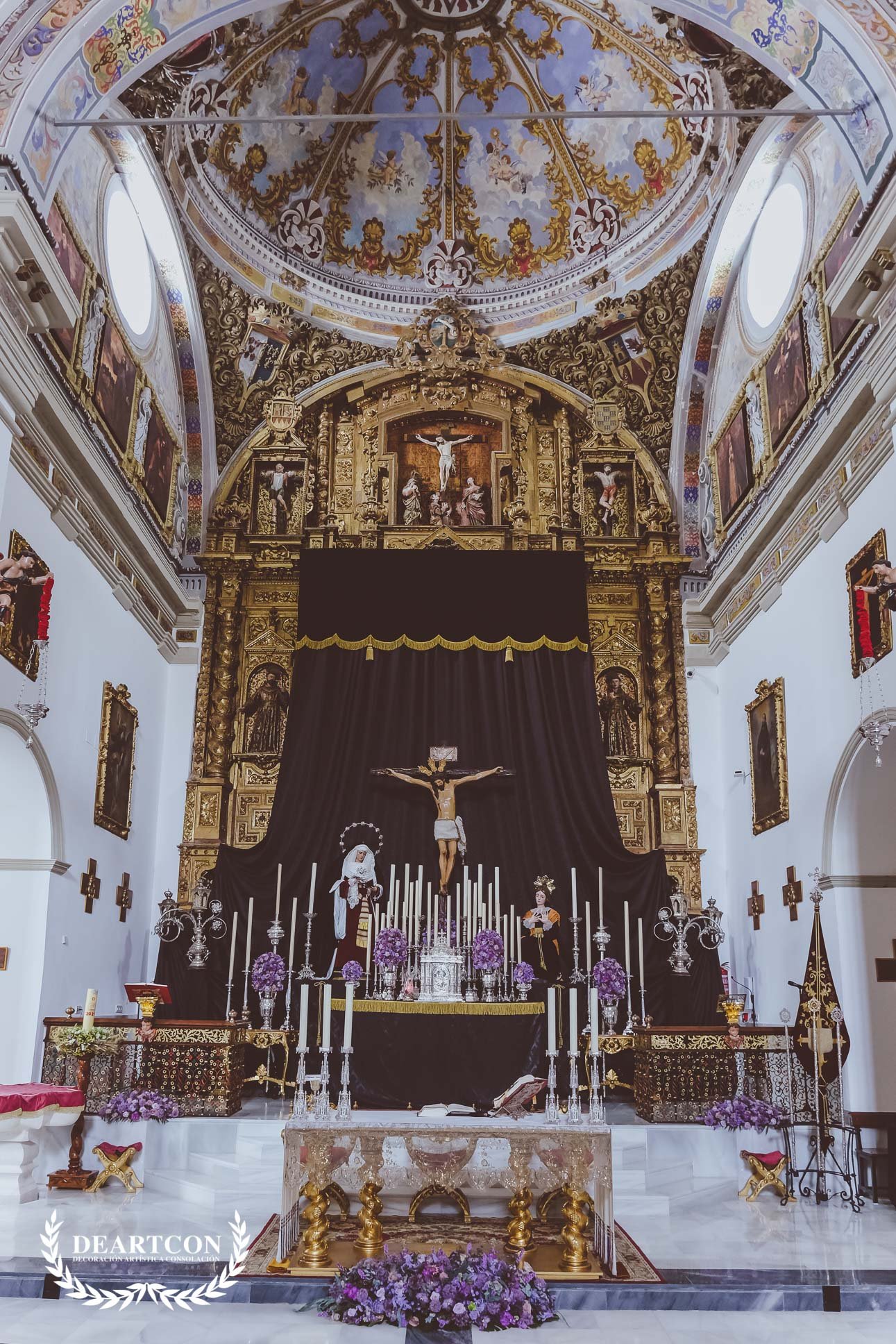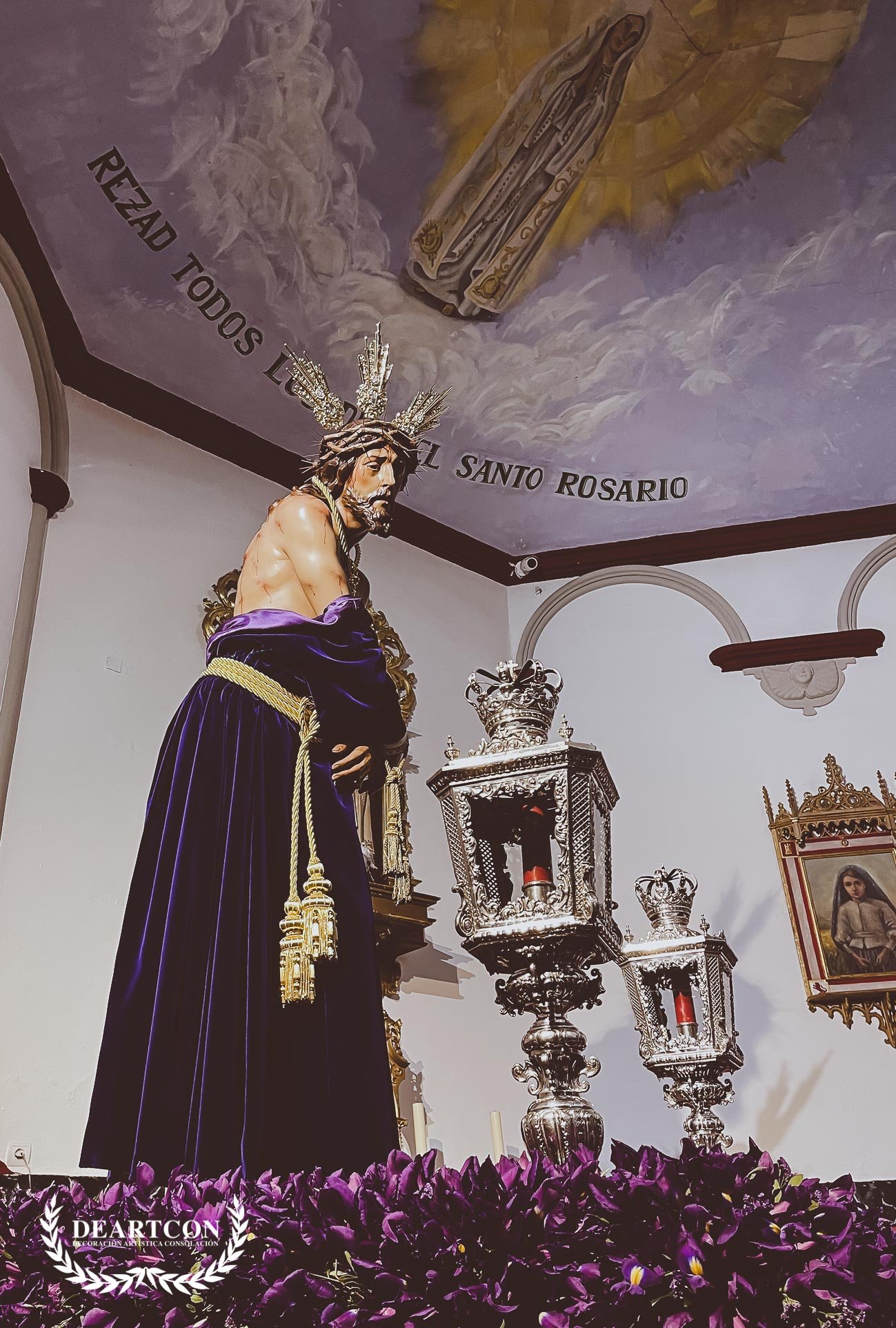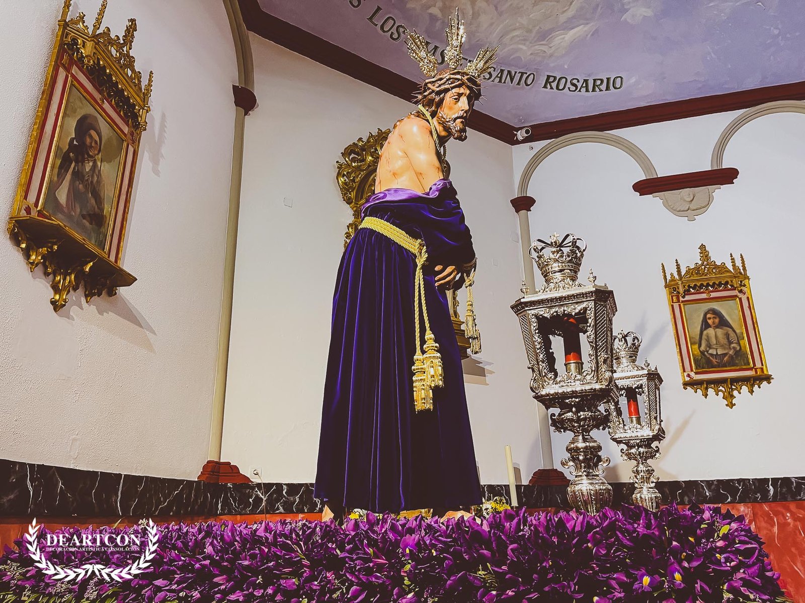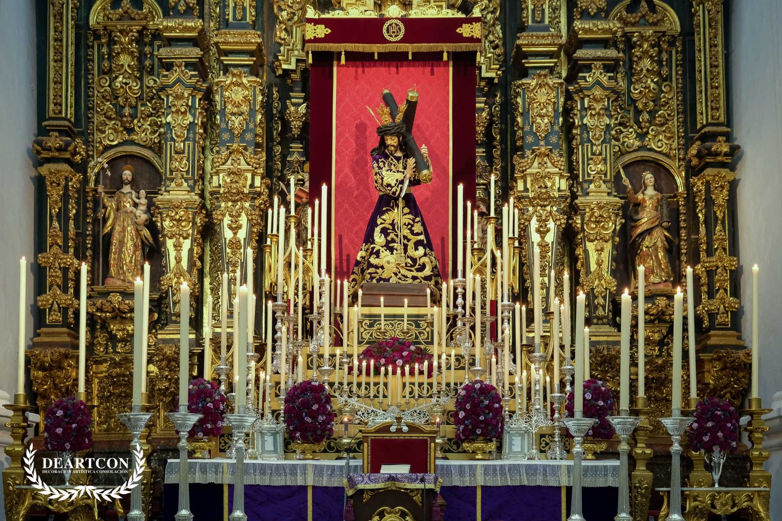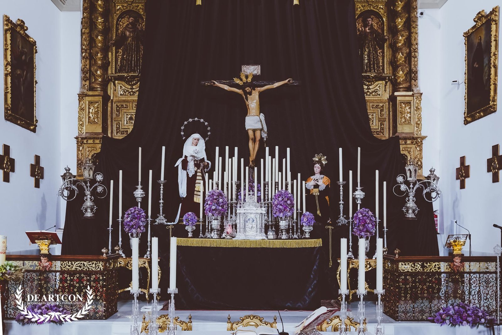 En la segunda semana para la Hermandad de la Vera Cruz, corporación a la que nos une desde hace años un cariño muy especial, arreglábamos sus cultos cuaresmales con una gran variedad de flor morada en sus distintas tonalidades.
